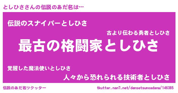 | ファンタジー風あだ名 | 『エターナルトシヒサー』『トシフェル』 |