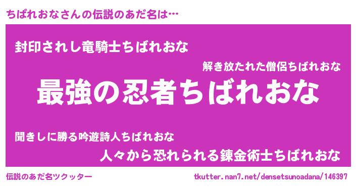 | 男性向けラノベタイトル風あだ名 | 『ちばれおなに滅ぼされるだけの簡単なお仕事です』 |