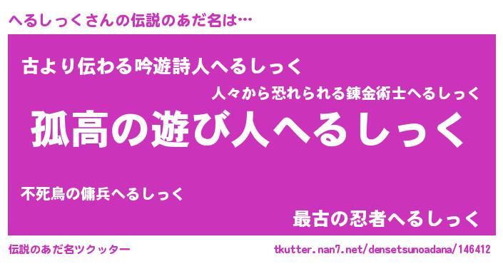 | 意味不明あだ名 | 『自称へるしっく』『永久保存へるしっく』 |
