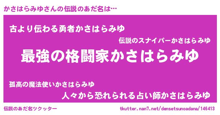| 意味不明あだ名 | 『かさはらみゆフォーエバー』 |