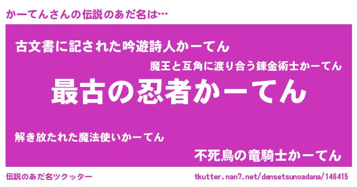 | ヒーロー風カッコイイあだ名 | 『仮面カーダー』『ウルトラかーてんマン』 |