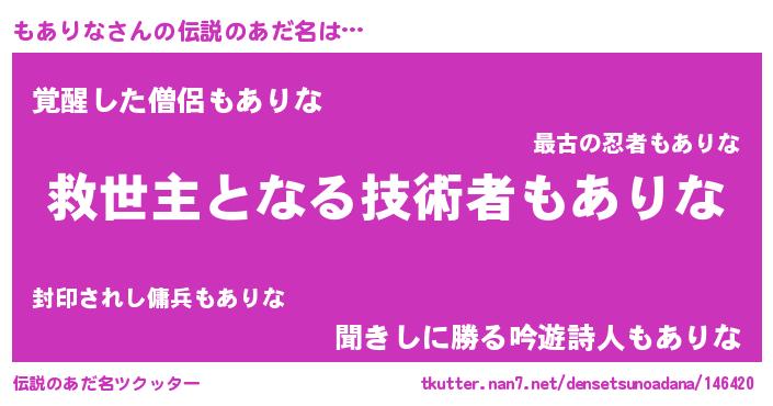 | 肩書あだ名 | 『もありな閣下』『もありな上級大将』 |