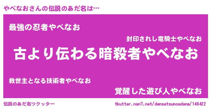 | ヒーロー風カッコイイあだ名 | 『ネオヤベナオ』『ウルトラやべなおマン』 |