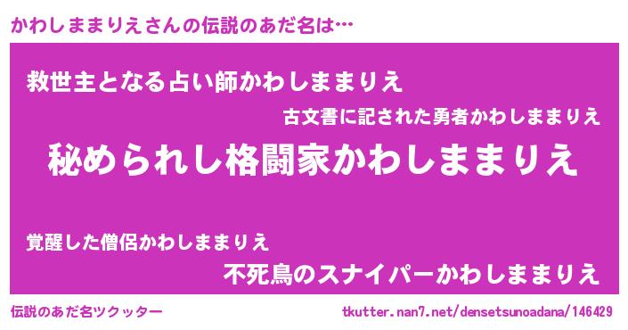 | 男性向けラノベタイトル風あだ名 | 『やはりかわしままりえの青春ラブコメはまちがっている 』 |