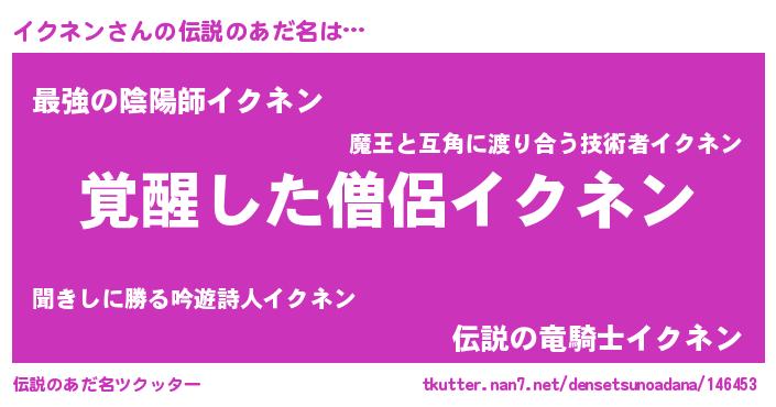 | ヒーロー風カッコイイあだ名 | 『炎刃騎士イク』『ウルトライクネンマン』 |