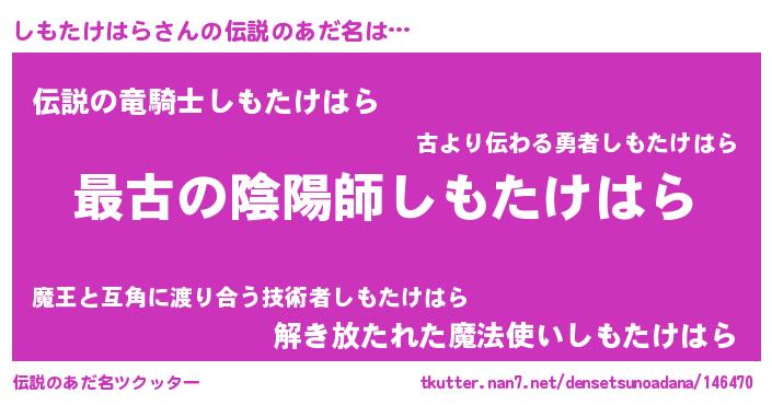 | ヒーロー風カッコイイあだ名 | 『ウルトラしもたけはらマン』 |