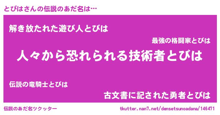 | 意味不明あだ名 | 『住所不定無職とびは(4歳)』 |