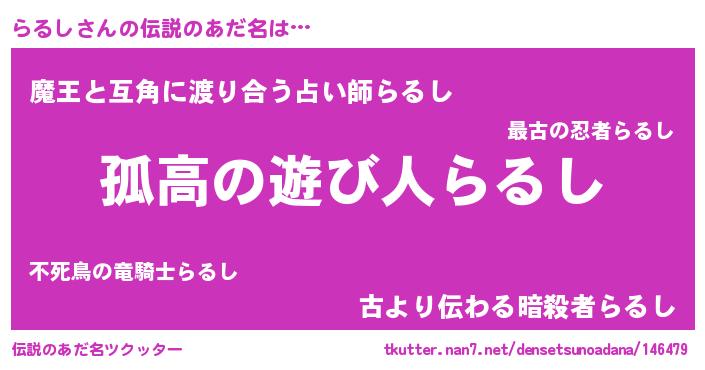 | 女子向けラノベタイトル風あだ名 | 『らるしは平凡を望む』『らるし恋絵巻』 |