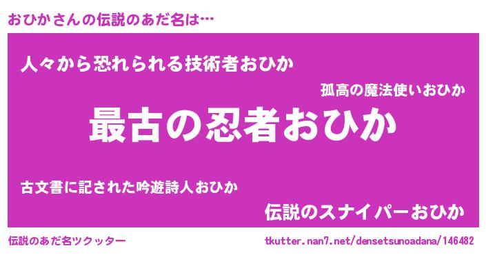 | 男性向けラノベタイトル風あだ名 | 『おひかに滅ぼされるだけの簡単なお仕事です』 |