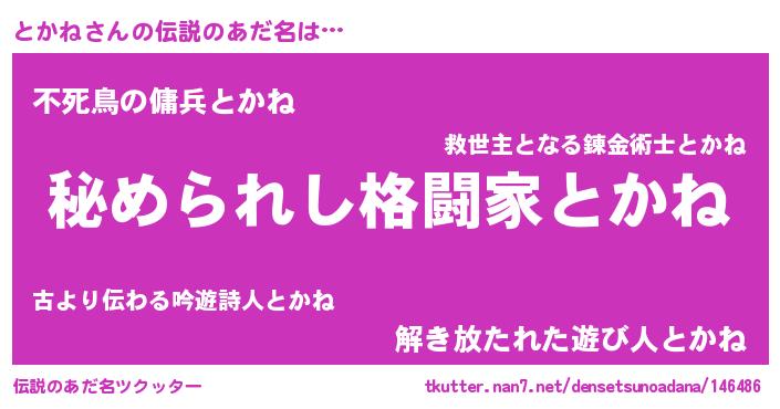 男性向けラノベタイトル風あだ名 | 『トカネスレイヤー』『とかねの憂鬱』 |