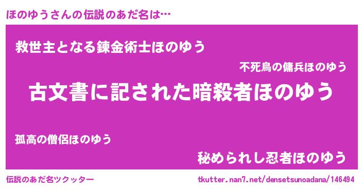 | ヒーロー風カッコイイあだ名 | 『ネオホノユウ』『天空の使者ほのゆう』 |