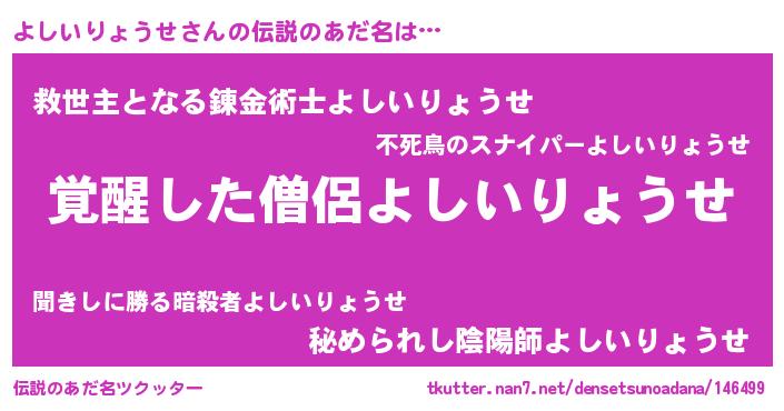 | ヒーロー風カッコイイあだ名 | 『炎刃騎士ヨシ』 |