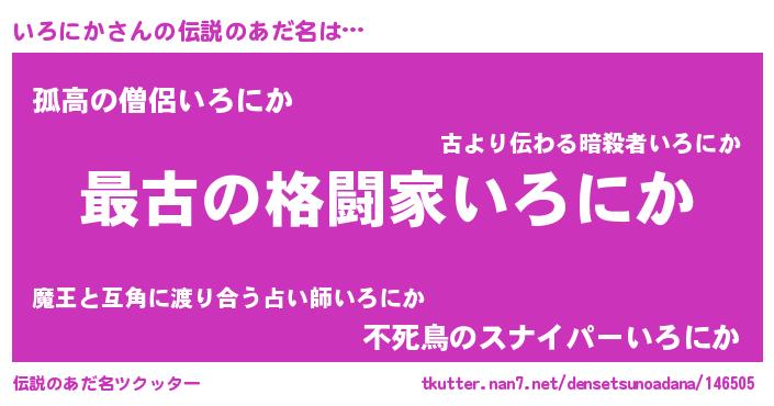 | 意味不明あだ名 | 『いろにかフォーエバー』『自称いろにか』 |