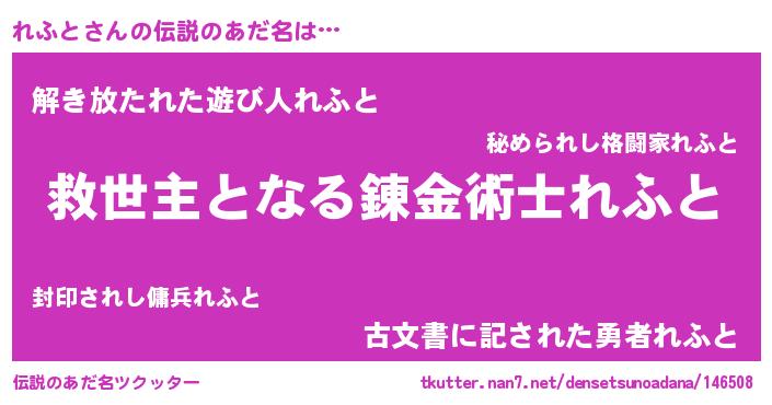 | 意味不明あだ名 | 『ヨモギ科れふと属』『永久保存れふと』 |