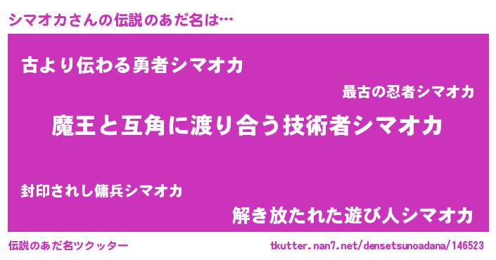 | 女子向けラノベタイトル風あだ名 | 『シマオカ恋絵巻』 |