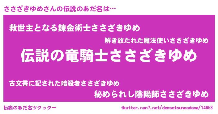 | 男性向けラノベタイトル風あだ名 | 『ささざきゆめの憂鬱』 |