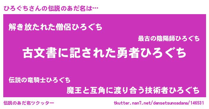| ヒーロー風カッコイイあだ名 | 『ネオヒログチ』『幻影騎士ヒロ』 |