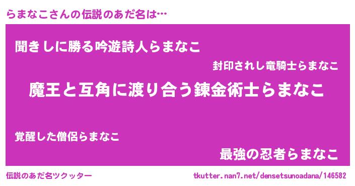 | ヒーロー風カッコイイあだ名 | 『愛の使者らまなこ』『ネオラマナコ』 |