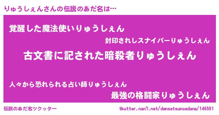 | 意味不明あだ名 | 『永久保存りゅうしぇん』 |