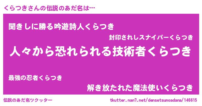 | ヘコむあだ名 | 『くらつき(小並感)』『くらを』 |