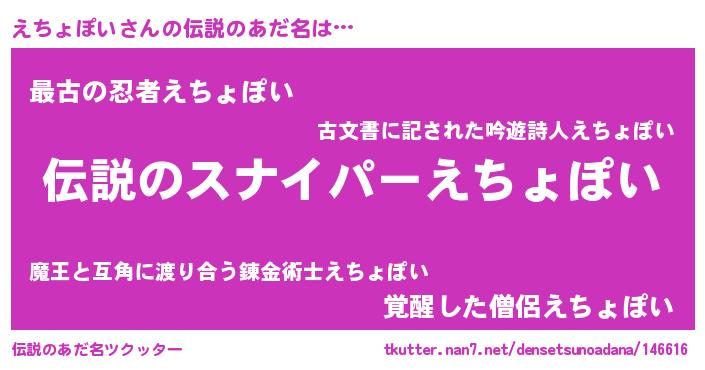 | ファンタジー風あだ名 | 『エチフェル』『エターナルエチョポイー』 |