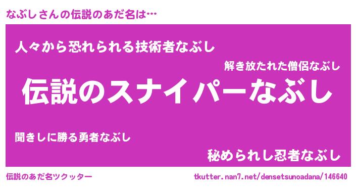 | 胡散臭い通販商品みたいなあだ名 | 『必ず成功する霊験あらたかなお札…その名も「なぶし」』 |