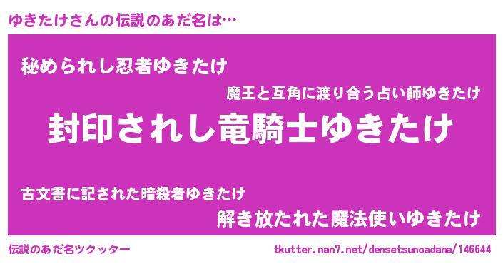 | ヒーロー風カッコイイあだ名 | 『スーパーユキタケ』『黄金騎士ユキ』 |