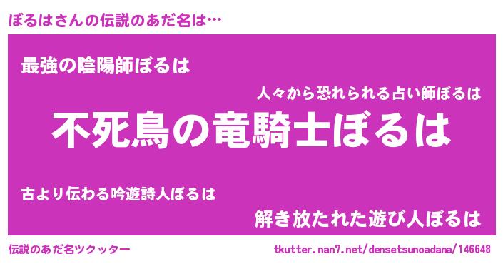 | 胡散臭い通販商品みたいなあだ名 | 『モテモテ間違いなしブレスレット…その名も「ぼるは」』 |