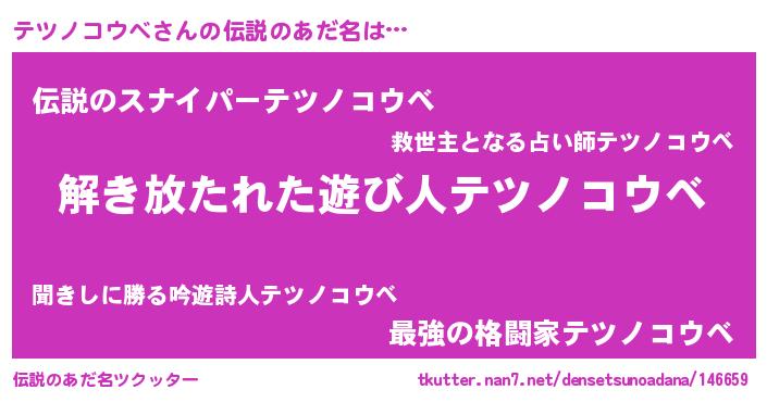 | 意味不明あだ名 | 『住所不定無職テツノコウベ(79歳)』 |