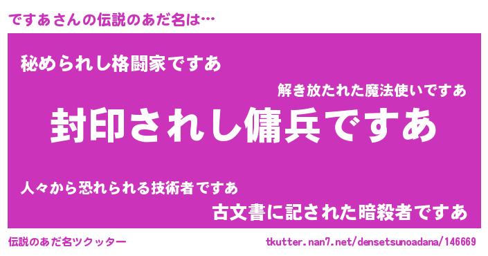 | 胡散臭い通販商品みたいなあだ名 | 『億万長者になれる水晶球…その名も「ですあ」』 |