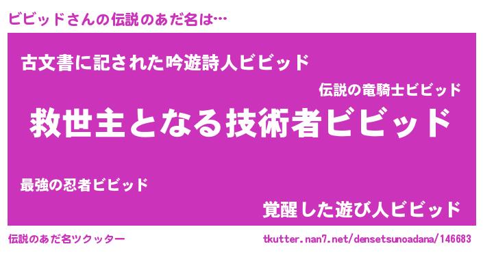 | ヒーロー風カッコイイあだ名 | 『慈愛の使者ビビッド』『ネオビビッド』 |