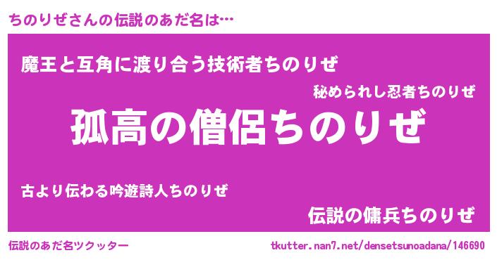 | 女子向けラノベタイトル風あだ名 | 『ちのりぜなんてお断りですっ。』 |