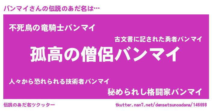| 男性向けラノベタイトル風あだ名 | 『バンマイスレイヤー』『緋弾のバンマイ』 |