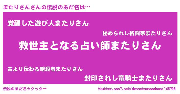 | 男性向けラノベタイトル風あだ名 | 『ノーゲーム・ノーマタリサン』 |