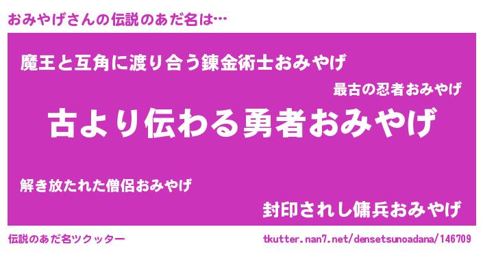 | ヒーロー風カッコイイあだ名 | 『ネオオミヤゲ』『友情の使者おみやげ』 |