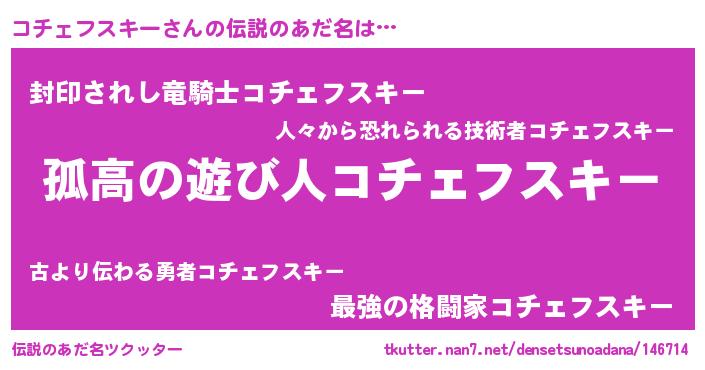 | 男性向けラノベタイトル風あだ名 | 『ダンジョンにコチェフスキーを求めるのは間違っているだろうか』 |