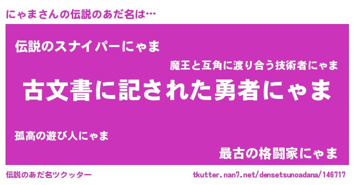 | ヘコむあだ名 | 『にゃま(苦笑)』『にゃっふぃ~』 |