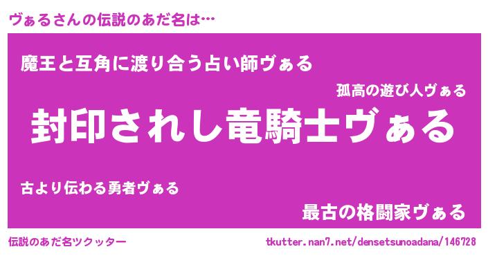 | 男性向けラノベタイトル風あだ名 | 『ヴァルアートオンライン』 |