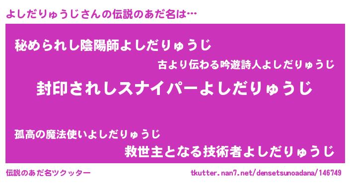 | ヒーロー風カッコイイあだ名 | 『スーパーヨシダリュウジ』 |