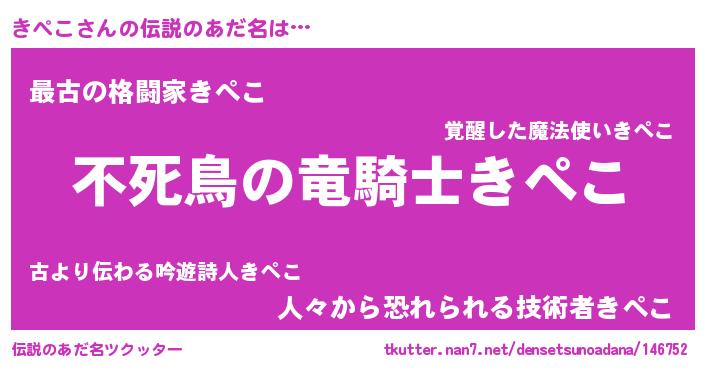| ファンタジー風あだ名 | 『キペフェル』『エターナルキペコー』 |