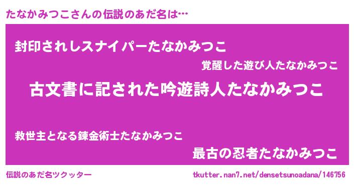 | ヘコむあだ名 | 『たなかみつこ(笑)』『たなもー』 |