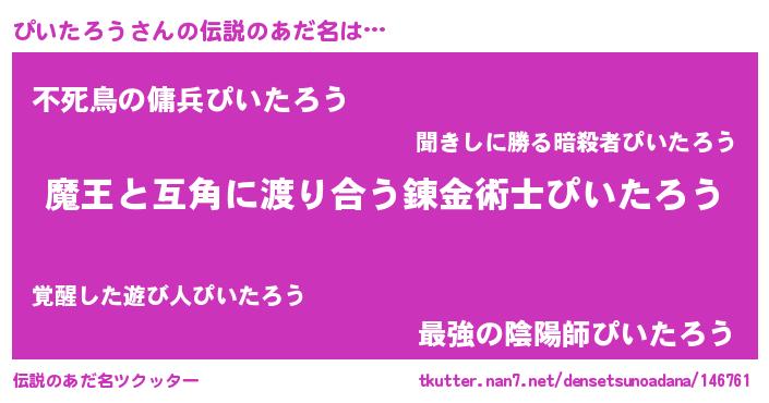 | 意味不明あだ名 | 『住所不定無職ぴいたろう(89歳)』 |