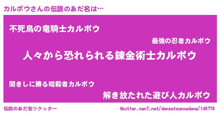 | 女子向けラノベタイトル風あだ名 | 『カルボウ夫妻のなれそめ』 |