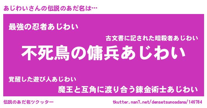 | ファンタジー風あだ名 | 『アジフェル』『エターナルアジワイー』 |