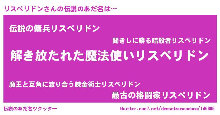 | 男性向けラノベタイトル風あだ名 | 『魔弾の王とリスペリドン』 |