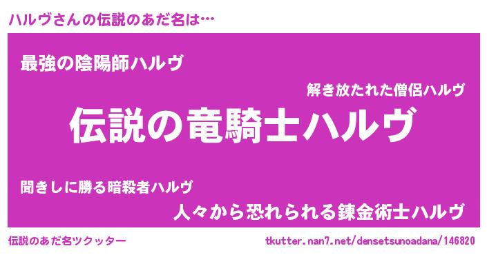 | ファンタジー風あだ名 | 『ハルフェル』『エターナルハルヴー』 |