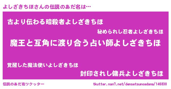 | ヒーロー風カッコイイあだ名 | 『友情の使者よしざきちほ』 |