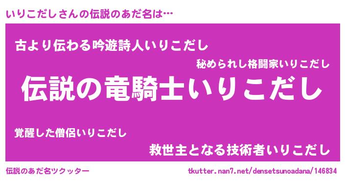 | ヒーロー風カッコイイあだ名 | 『仮面イリダー』『スーパーイリコダシ』 |