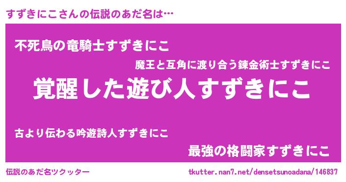 | 男性向けラノベタイトル風あだ名 | 『この素晴らしい世界にすずきにこを!』 |