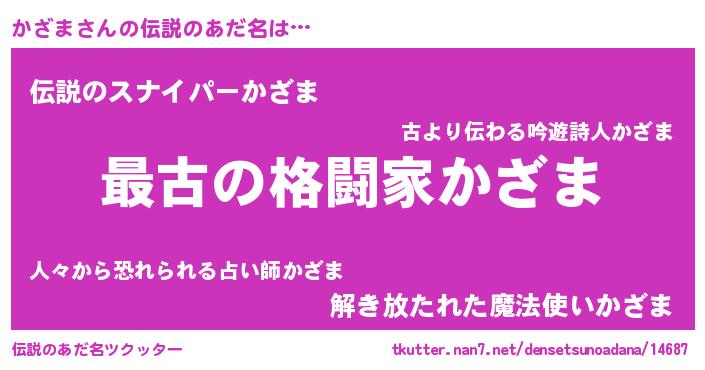 | ヒーロー風カッコイイあだ名 | 『仮面カザダー』『ウルトラかざまマン』 |